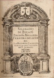 Bonito frontispício com as armas Carmelitas e um outro brasão d'armas que pensamos ser o do Arquiduque Carlos Alberto. Obra de grande qualidade poética e religiosa, escrita em inspiração e homenagem à Serra do Buçaco e à devoção que lá cultivava, e onde as freiras carmelitas tinham o seu ermitério e convento. Com algumas poesias pequenas e particulares, umas compostas em português, outras em latim, após o grande Poema, em castelhano. Termina com uma carta alheia, escrita em prosa castelhana, em que é louvada a autora do livro. De grande raridade, e valorizada por ser um dos primeiros frutos de poetisas lusitanas, impresso.